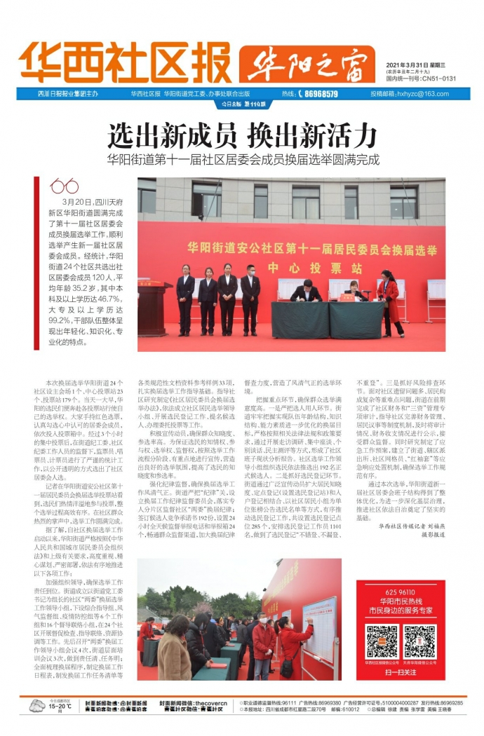 通过本次选举,华阳街道新一届社区居委会班子结构得到了整体优化,为进一步深化基层治理,推进社区依法自治奠定了坚实的基础。