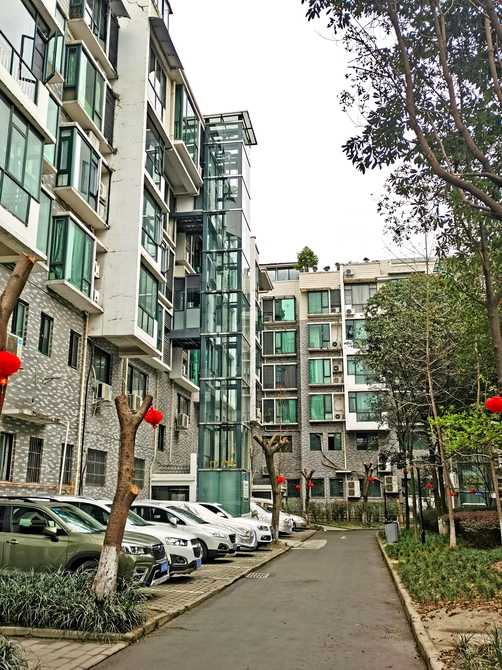 华阳亲水湾小区自主增设的电梯方便了居民上下楼。