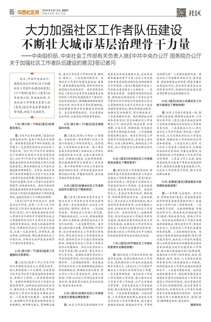 ——中央组织部、中央社会工作部有关负责人就《中共中央办公厅 国务院办公厅关于加强社区工作者队伍建设的意见》答记者问