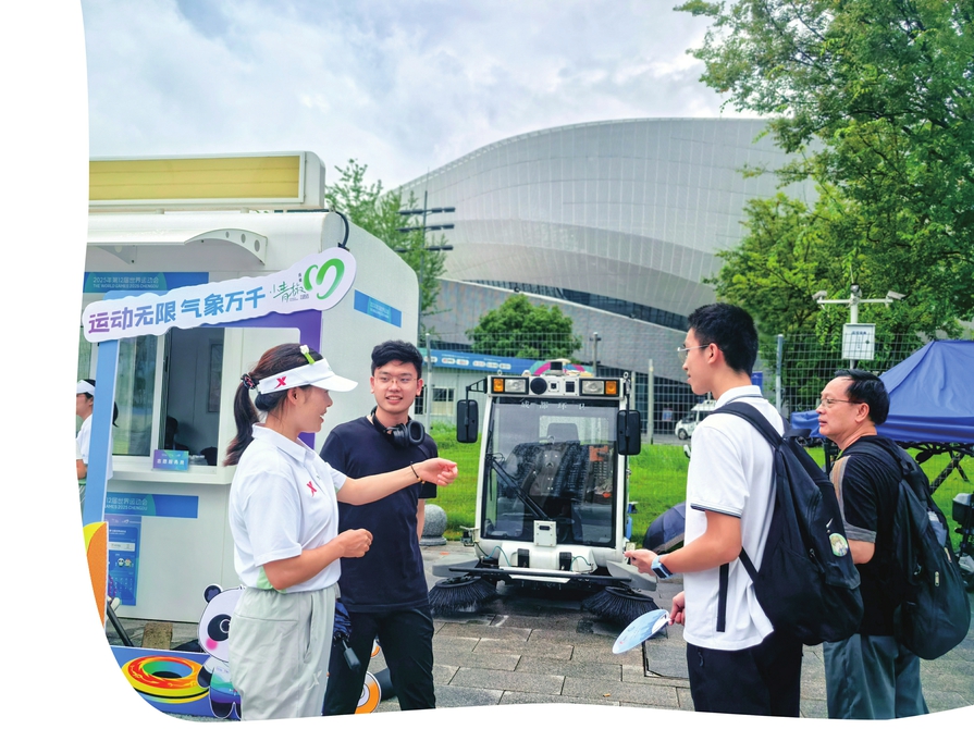 赛场外,志愿者们讲好“成都故事”,开展志愿服务。