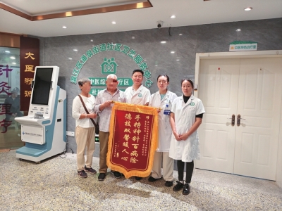 “手持神针百病除,德技双馨暖人心”。近日,温江居民张大爷与老伴走进成都市温江区涌泉街道社区卫生服务中心,为中医康复科杨医生送上锦旗。