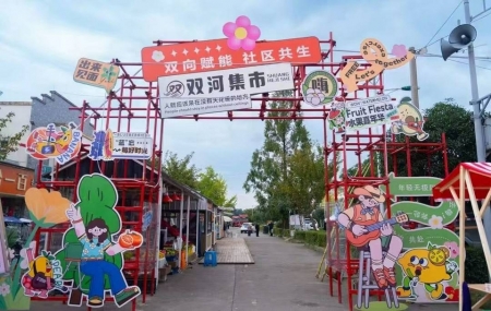 双河市集的落地,源于对居民生活需求的精准回应与治理难题的主动破解。市集规划兼具实用性与温度:设固定商贩摊位40个,为经营主体提供合规经营阵地,从源头规范经营秩序;另外还设免费爱心摊位10个,为困难群众开辟就业增收渠道,让民生温度融入市集日常;引入非遗展位2个,让传统技艺与文化在消费场景中焕发新生,丰富居民精神文化需求;增设集市流动书屋1个,将书香与烟火气相融,为市集注入文化底蕴。