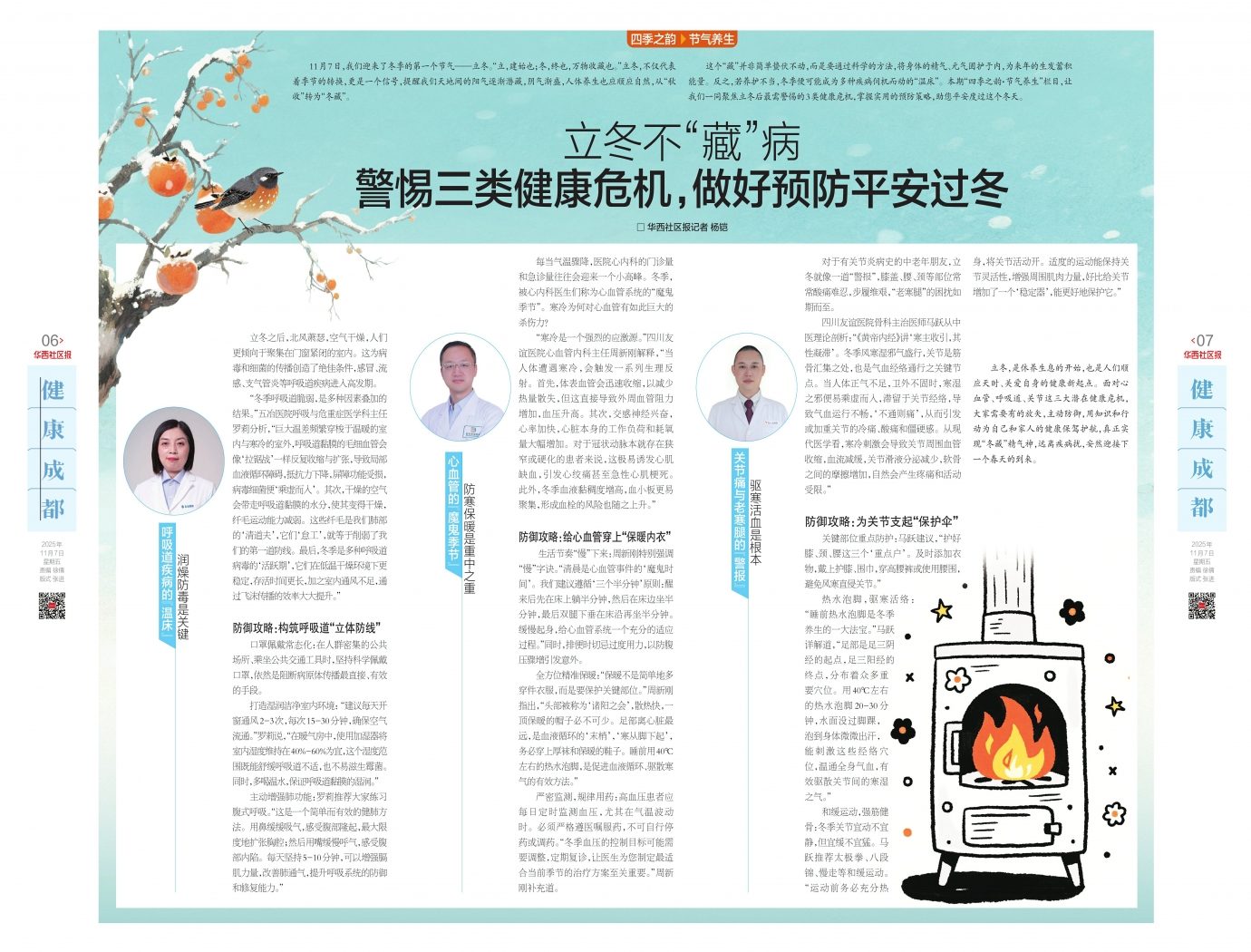 这个“藏”并非简单蛰伏不动,而是要通过科学的方法,将身体的精气、元气固护于内,为来年的生发蓄积能量。反之,若养护不当,冬季便可能成为多种疾病伺机而动的“温床”。本期“四季之韵·节气养生”栏目,让我们一同聚焦立冬后最需警惕的3类健康危机,掌握实用的预防策略,助您平安度过这个冬天。