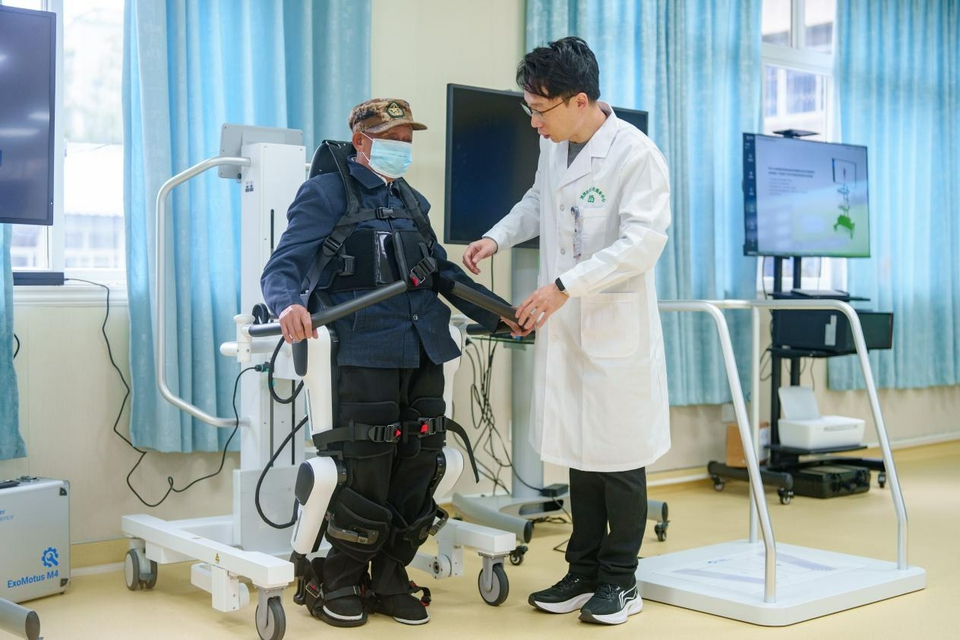 安全与精准,是智能康复的另一大亮点。在步态训练区,悬吊于屋顶的“天轨系统”为行动不便的患者提供了全方位的安全防护,让他们能安心地进行平衡和行走能力重建。同时,中心引进的上下肢康复机器人则化身“钢铁康复师”,能根据患者情况精准发力,辅助完成标准化的肢体动作,训练效率和精准度远超传统方式。