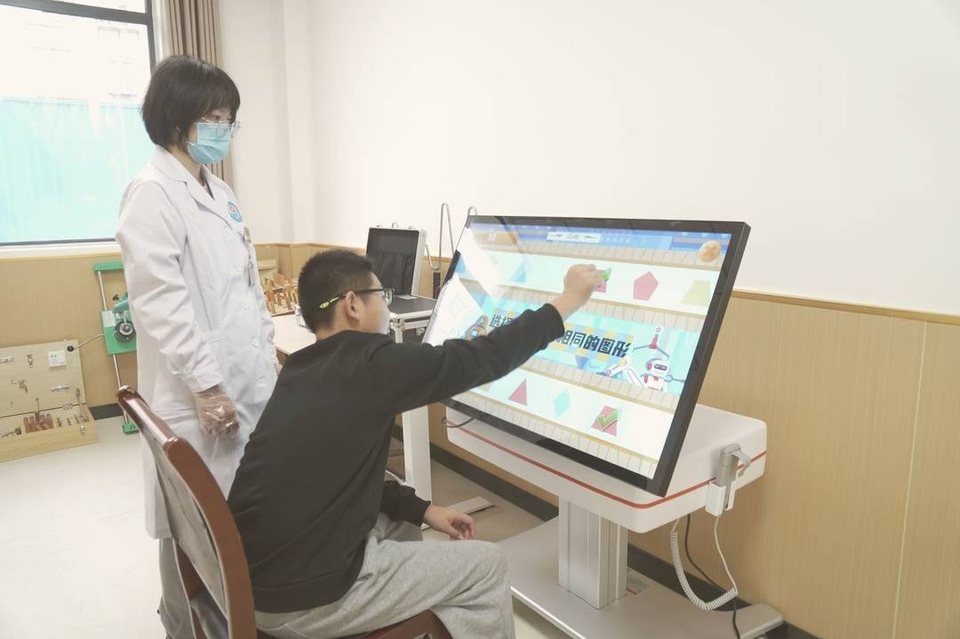 11月10日,记者走进中心,科技感扑面而来。传统的康复器械被赋予了“趣味灵魂”。数字OT评估与训练系统将康复动作融入互动游戏中,患者在进行上肢、认知等功能训练时,仿佛在完成一场场游戏闯关。这种模式极大地提升了患者的参与积极性,尤其有助于脑卒中、脑外伤等患者的长期康复。一位陪伴孩子进行“作业治疗”的家长表示:“这种形式孩子更容易接受,我们天天都来。”