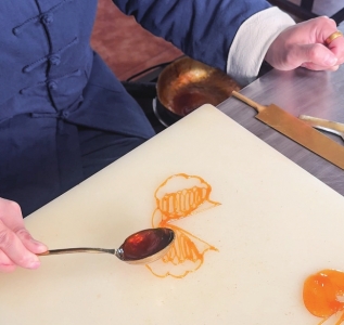门外汉可能觉得糖画很简单,但糖画与绘画大相径庭。糖浆过烫、过冷都会导致形状改变,因此要在合适的温度范围内将作品完成,而熬制糖浆时的火候、温度、时间等等更是讲究,每一个步骤都顺利才能出得了透明琥珀色的糖浆。