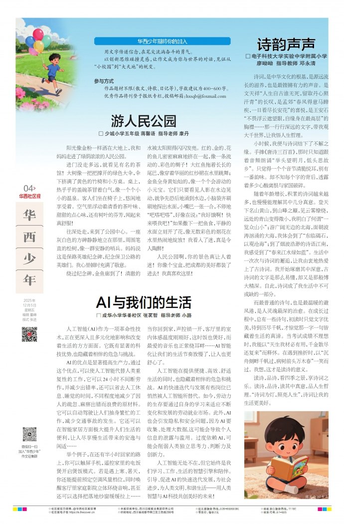 作品题材不限(散文、诗歌、日记等),字数建议为400-600字。优秀作品将刊登于报纸专栏,投稿邮箱:hxsqb@foxmail.com