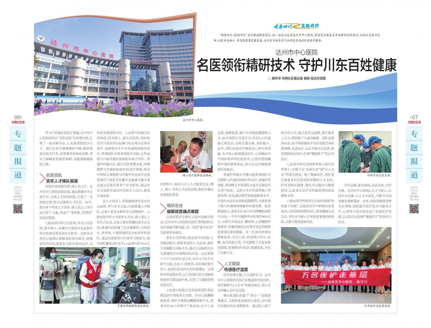 “健康四川·医路同行”系列报道继续前行,这一站我们走进达州市中心医院,看这家承载着百年品牌积淀的医院,如何以名医为引领、以技术为核心,书写高质量发展答卷,让川东百姓在家门口就能享受到优质医疗服务。