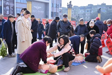 与以往传统义诊不同,本次活动突出“场景化”与“体验感”。“生命守护”急救技能教学区,市民在专业人员指导下学习心肺复苏操作;“杏林春暖”中医药体验区,养生茶饮、耳穴贴压等吸引众人驻足品味传统医学;智能康复机器人、AI体质辨识等科技体验项目,则展示了“智慧医疗”赋能健康管理的可能。现场还同步开展健康知识竞答、慢病管理咨询、手写健康主题春联等服务,将健康祝福融入年节文化。