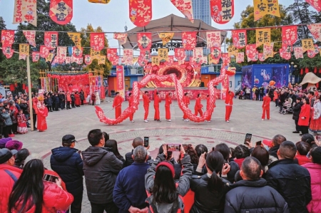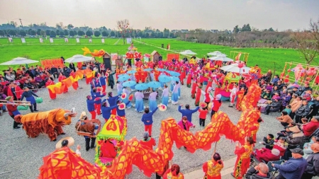 金骏迎春,年味满城。春节期间,成都全市各镇(街道)、村(社区)紧扣新春主题,统筹资源、创新场景,推出灯会庙会、文艺展演、邻里互动等一批接地气、有特色的群众文化活动,以一街一景、一社一品的生动实践,绘就公园城市幸福新春的美好画卷。