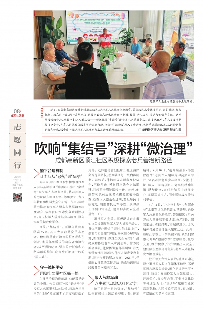 成都高新区顺江社区积极探索老兵善治新路径