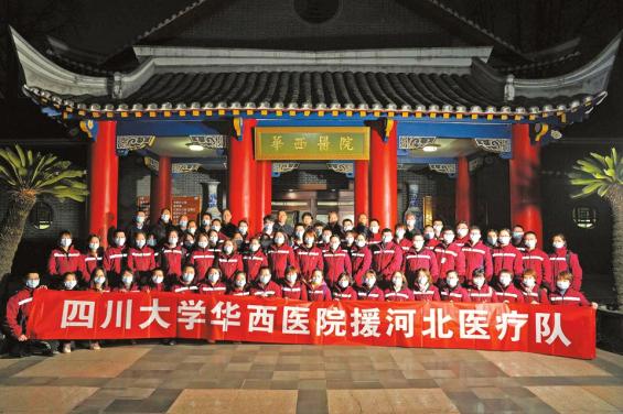 ▲四川大学华西医院支援河北医疗队出征前拍摄大合照