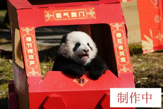 上午11时,“熊猫奶爸”“熊猫奶妈”们抱着10只熊猫宝宝走进熊猫幼儿园运动场,向全国人民送上最萌的新春祝福。随后,这群好动的熊猫宝宝被放进了贴有熊猫图案的“新年萌盒”内。工作人员为每只熊猫宝宝准备了贴有福字的“竹篓红包”,里面装有熊猫宝宝可以吃的小零食,同时也寓意把好运和祝愿送给它们。