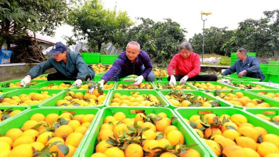 仁寿村民正在分拣刚采摘的柑橘。