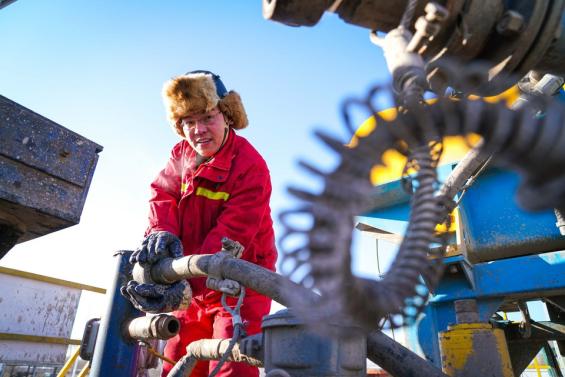 大庆油田1205钻井队钻井工人在野外钻井平台作业(2021年1月7日摄)。新华社发