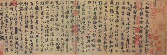如果这些史料所记是真,那么,《兰亭序》在唐太宗死后,又死而复生,继续着它在人间的旅程。在宋人《画墁集》中,我们又能查到它新的行踪:在宋神宗元丰末年,有人从浙江带着《兰亭序》的真本进京,准备用它在宋神宗那里换个官职,没想到半路听闻宋神宗驾崩的消息,就干脆在途中把它卖掉了。