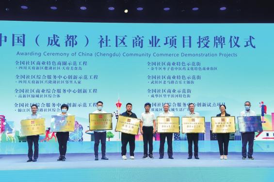 9月16日,以“社区商业点亮美好生活”为主题的2021中国(成都)社区商业发展大会在四川天府新区华阳街道麓湖公园社区麓湖·水上剧场举行。会上,8个项目获得“中国(成都)社区商业示范项目”认证授牌,四川天府新区华阳街道麓湖社区·天府美食岛荣获“全国社区商业特色商圈示范工程”授牌。