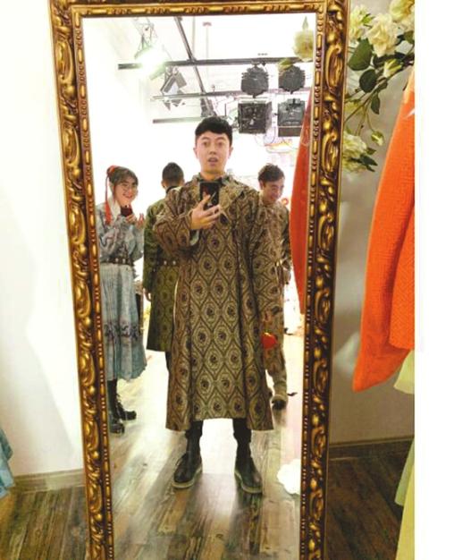 2018年,身边接触汉服的朋友或多或少都有一些成果了,这也是左成龙选择辞职从食品包装设计师跨行去做汉服设计师的原因之一。同年年底,他来到了一家工作室担任汉服设计师。“在这家工作室,我年龄最长,工作经验相对丰富一些。尽管之前从未接触过汉服,但由于绘画功底扎实,所以上手很快。”他回忆起刚开始绘制汉服底稿时的情景,“我总是最后一个交手稿,但几乎每条手稿制作成样衣时,都能得到大家的认可。”