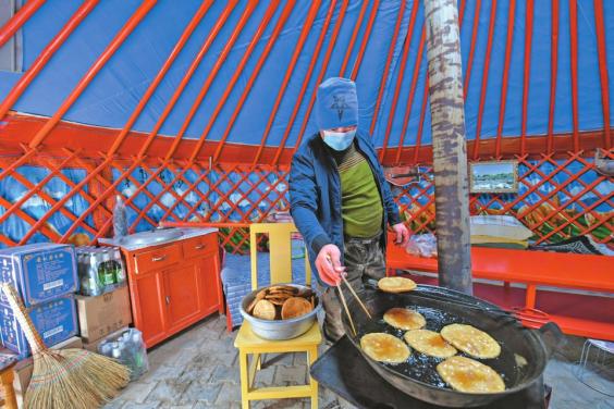 额济纳旗大漠宴会厅是一家政府指定的为滞留游客提供餐食的餐厅,负责人向颖说:“政府统一调配补给粮油蔬菜等物资,目前物资储备很充足。”据额济纳旗新冠肺炎防控工作指挥部相关人员介绍,额济纳旗已储备生活物资14类4500余吨,并协调周边地区开辟生活必需品运输绿色通道,确保物资储备能够满足正常需求。