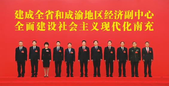 新一届南充市委领导班子:刘强(左六)、古正举(右五)、王善平(左五)、王军(右四)、王希刚(左四)、李在伟(右三)、廖雪梅(左三)、张会民(右二)、黄志权(左二)、方雷(右一)、陈有波(左一)。