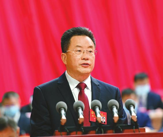 刘强代表中国共产党南充市第六届委员会向大会作报告。