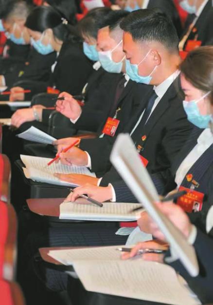 党代表们聚精会神聆听报告。