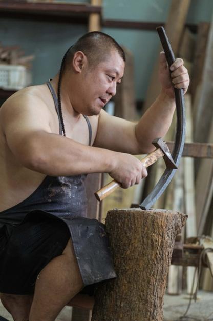 从备材到制弓,武家弓的制作更延续着严苛的时间表——春取角,夏制筋,秋合三材,冬伐竹。春取角,因为春天牛的血气旺盛;夏制筋,气温高牛油好去除,要把牛筋砸散,梳成头发丝般;从秋末至冬初是李青阳一年中最忙的时候,他要把筋、角、木3种材料用鱼胶粘合在一起。“因为鱼胶蛋白在常温下半个小时就会变质,所以只能在秋冬时节制作。”他说。
