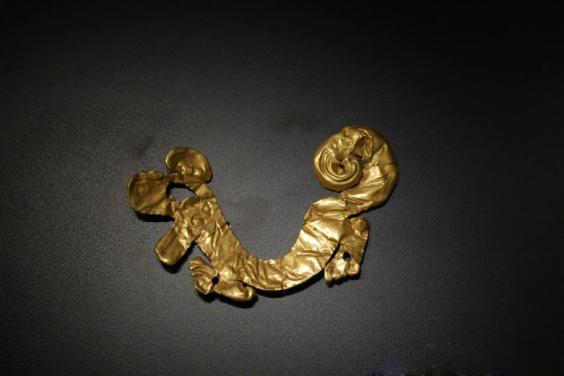 金沙遗址出土的石虎、青铜虎,以及三星堆出土的金箔虎(从上至下)。