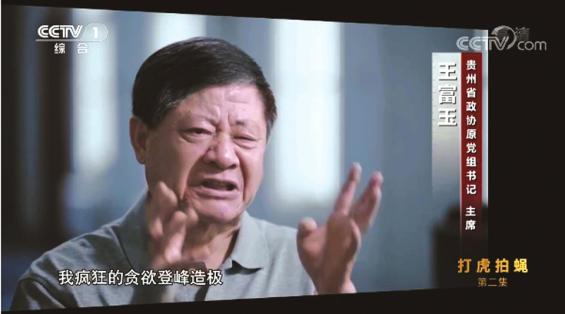 ▲1月16日,贵州省政协原党组书记、主席王富玉在电视专题片《零容忍》第二集《打虎拍蝇》中说“我疯狂的贪欲登峰造极”。 央视视频截图