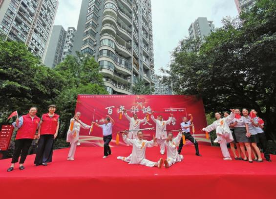 小区居民参加庆祝建党百年文艺表演。