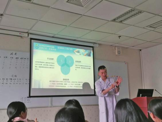 科室主任程明对同事们进行培训。
