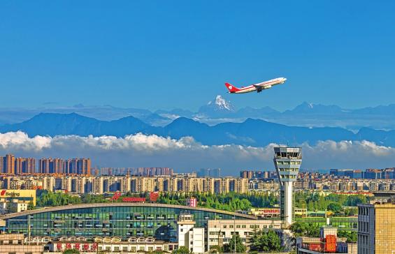 飞机从成都双流国际机场升空高飞。