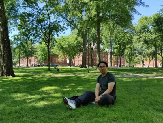 阿勒拉哈在哈佛大学校园的草地上。图据澎湃新闻