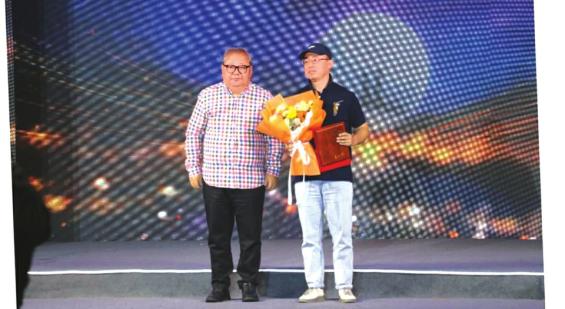 吉狄马加为吴小虫(右)颁奖。 (主办方供图)