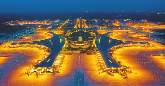 成都天府国际机场夜景。成都天府国际机场供图