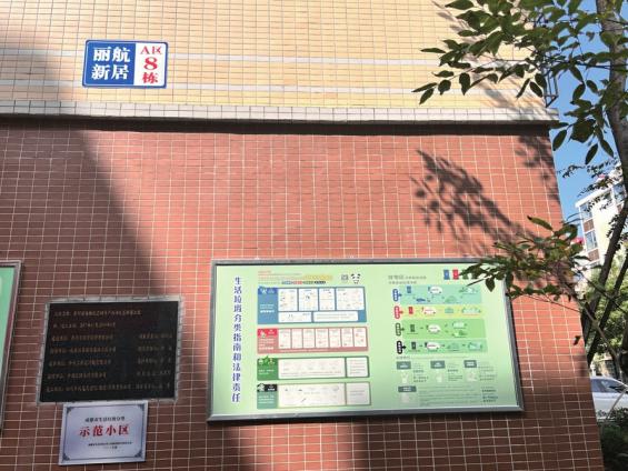 作为垃圾分类的先行者和受益者,在探寻摸索垃圾分类期间,丽航新居小区迎来了大变样:聚力氛围营造,各类垃圾分类展板、宣传画报一进小区就映入眼帘;完成“撤桶并点”,设置的分类收集房、大件垃圾暂存点、洗手池,让以前脏乱差的垃圾投放点改头换面;建立监督机制,安排垃圾分类引导员和监督员在集中投放时段全程监督引导群众正确投放,其它时段全程监控监督。2021年,丽航新居被评为成都市垃圾分类示范小区。