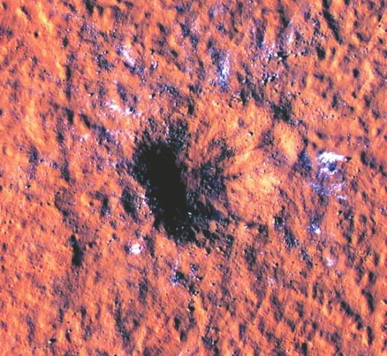 美国航空航天局火星勘测轨道飞行器则捕捉到撞击留下的陨石坑图像。图像显示,陨石坑附近露出地表下的大块冰,因撞击飞溅的碎块最远落在陨石坑40公里外。