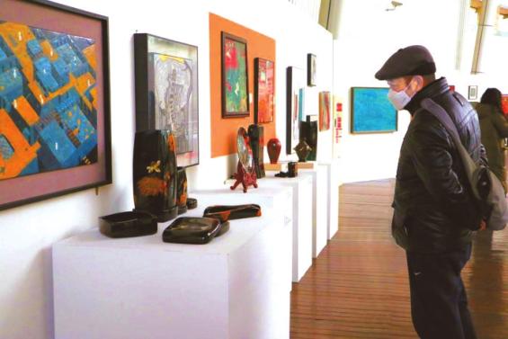 展览中,以成都漆器最为古老的雕花填彩工艺制作而成的“雕漆隐花云气纹漆钫”套组,线条流畅古色古香;极具视觉冲击力的漆画《祝贺》,采用作者独创的“彩色分光技法”,将画面中的仙鹤刻画得栩栩如生,是重庆漆器髹饰技艺的代表……从展品之中,观众能够看到成渝两地漆器作品和技艺的相互影响和融合。