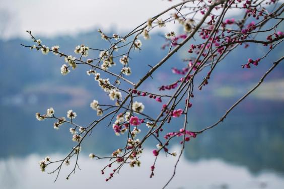 红白梅花交相辉映。王贵军摄于成都文化公园