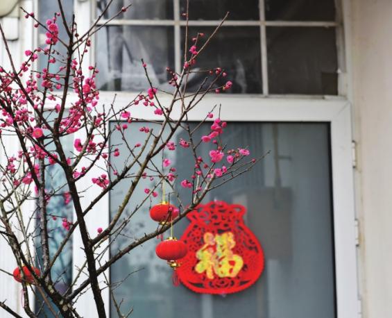 红白相间春已到。摄影龚全意