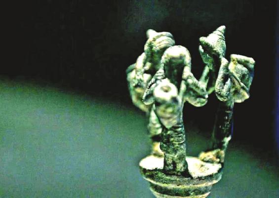 “目前在西南青铜文化中,除了滇文化的青铜器以外,人物造型最丰富的青铜器就在老龙头遗址。”周志清介绍,滇文化的青铜器偏向写实、生活化的风格,多数为立体造型。而盐源的青铜器除了三女背水铜杖首和铜立人外,基本以平面的造型为主。“这些青铜器虽然铸造得比较粗糙,但是造型是非常多的。”这些青铜器明显受到了滇文化、欧亚文化和北方草原游牧文化的影响。“在现在的西南青铜文化中,它应该是受到欧亚文化,包括北方草原游牧文化影响最为突出的。”周志清说。