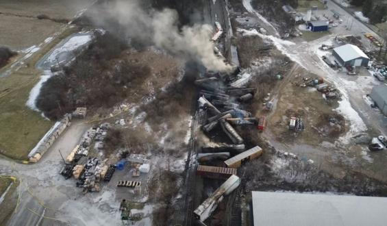 2月3日晚,诺福克南方公司一列货运列车驶经东巴勒斯坦镇时发生事故,共50节车厢脱轨或损坏;20节运载危险品的车厢中有11节脱轨,其中5节载有氯乙烯。应急人员2月6日以避免大规模爆炸为由,对脱轨的氯乙烯罐车进行“受控释放”,燃烧产生的滚滚黑烟在东巴勒斯坦上空弥漫。
