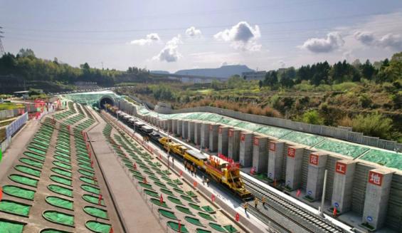 中铁四局汉巴南铁路6标副经理吴学华介绍,此次铺轨采用的是CPG500智能铺轨机组,相较于传统铺轨机动力更强,更适合大坡道山区作业。此外,机械化程度可提高90%,对辅助作业人员数量依赖可降低63%,明显减少辅助人员数量,节约施工成本,缩短铺轨工期。