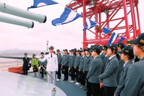 4月23日,宁波市师生代表参观宁波舰。新华社发