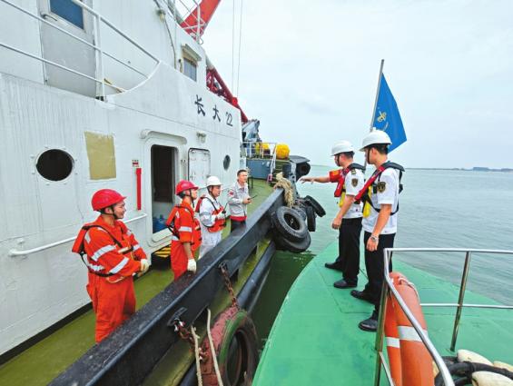 16日,湛江海事局加强海面巡查,提醒船舶注意防御台风。湛江海事局供图