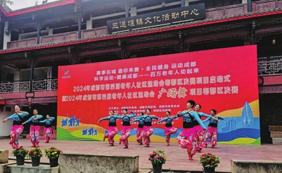 6月14日,2024年成都市第四届老年人社区运动会郫都区广场舞决赛在三道堰镇举行。15支来自郫都区社区(村)老体协的代表队以舞会友,同台“切磋”。