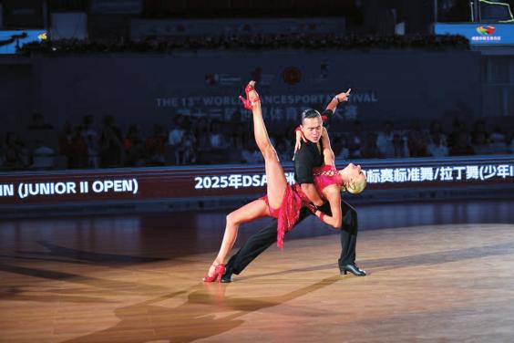 第十三届世界体育舞蹈大赛比赛现场。图据新华社客户端