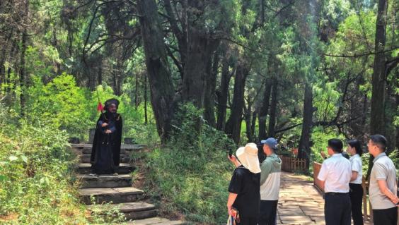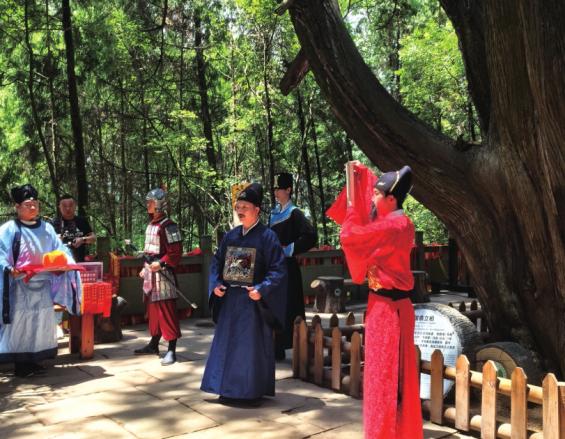 翠云廊景区上演《张飞植柏》情景剧。