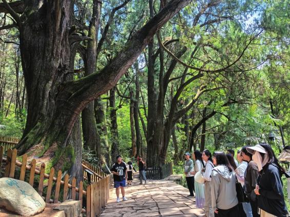景区内,“一树一策”的保护措施随处可见:倾倒的古柏由钢索牵引加固,受损的树洞经专业“微创”修复,对濒危衰弱的古柏注射营 养 液 进 行“ 复健”……“像保护大熊猫一样保护古树名木”,正是这份古今接力的守护,让7778株古柏历经岁月洗礼仍生机盎然,枝叶年年翠绿。