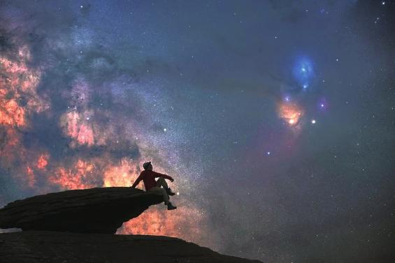 细品许晓平的作品,很有个人风格:悬崖边上的人、冰面上的拍摄者、海滩旁沙滩椅上的观星人、森林木屋前的提灯者……人和星空,在许晓平的作品中同框。“每次站在夜色里,抬头仰望星空,能让自己变得心情平和。”拍摄中,许晓平总会给自己留下一些时间,与静谧的星空相处,让自己可以静静地看一看头顶的这一片穹顶宇宙。